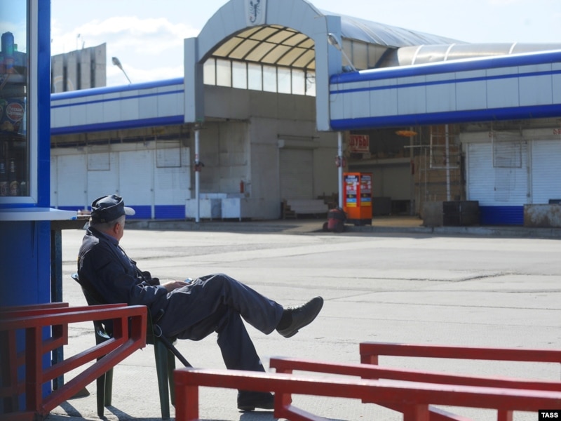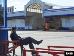 Охранник на территории пустого Черкизовского рынка, закрытого в связи с нарушениями санитарных норм