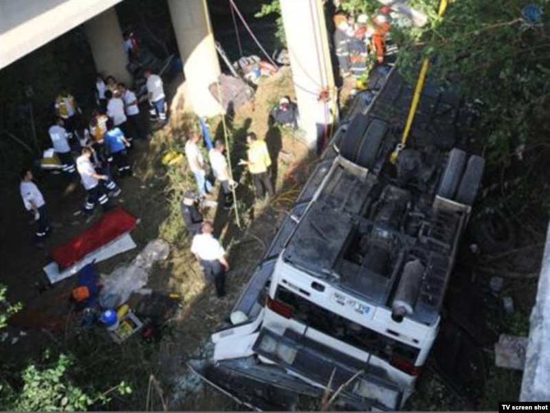 Автобус следовал из курортного города Алания на экскурсию. Он упал с 15-метрового моста в реку. По данным туроператора, организовавшего поездку, причиной катастрофы стала внезапная остановка сердца у водителя. По другой версии, водитель заснул за рулем.