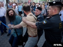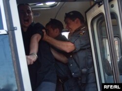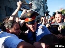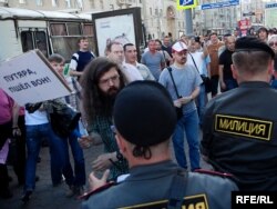 Как только Сергей Удальцов и его соратники достали "черные метки" для Юрия Лужкова, сотрудники милиции приступили к задержанию.