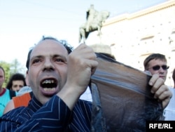 Акция "День гнева" за отставку мэра Москвы Юрия Лужкова началась с задержания организаторов: лидера "Левого фронта" Сергея Удальцова и правозащитника Льва Пономарева.
