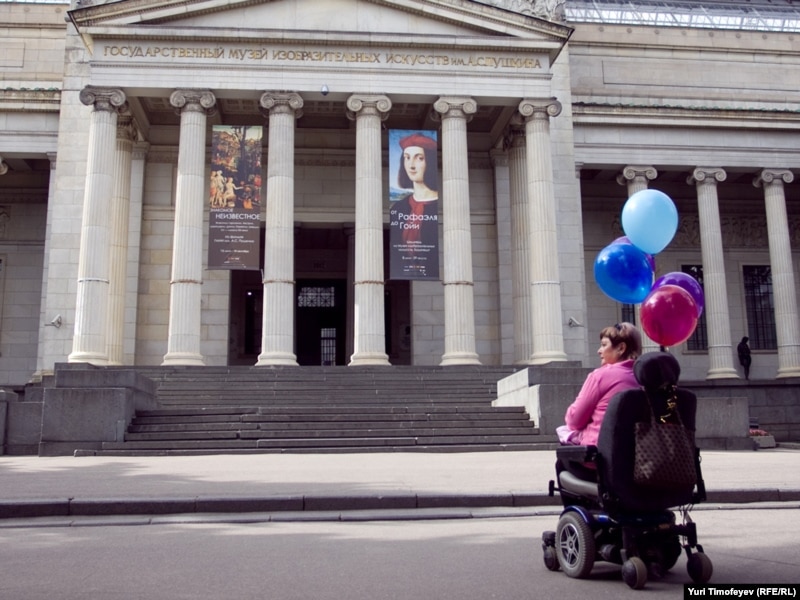 Татьяна Лазерева пытаеться попасть в Пушкинский музей на ивалидной коляске