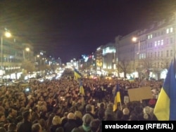 Несколько тысяч человек вышли на Вацлавскую площадь столицы Чехии, чтобы выразить солидарность с украинским Майданом и почтить память погибших.