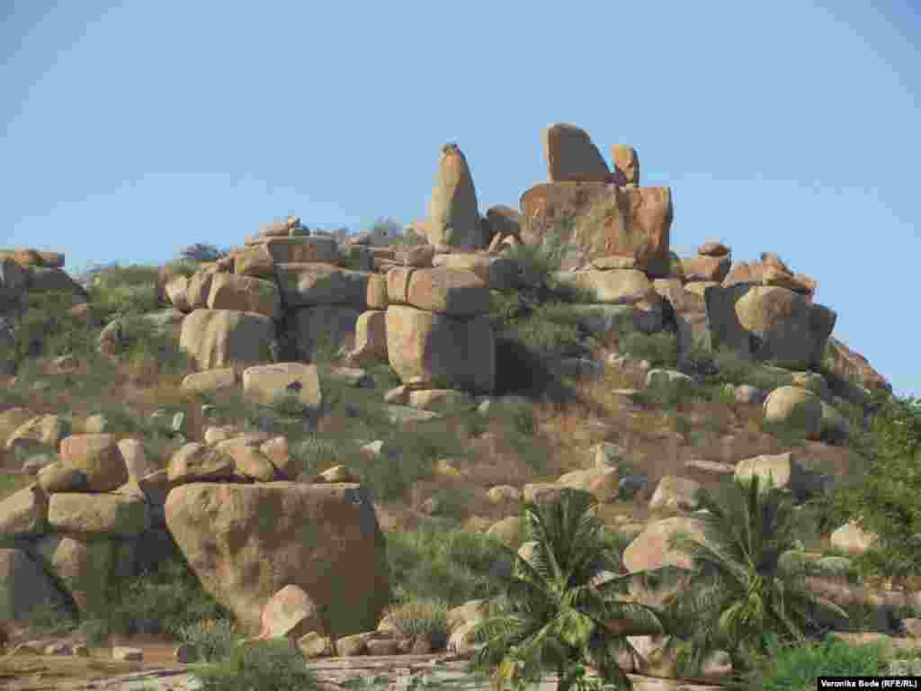 Хампи, индуистский религиозный центр, расположен среди руин столицы Виджаянагарской империи, занимавшей весь юг Индии за рекой Кришна с 1336 года до середины XVII века. Руины Виджаянагара принадлежат к объектам всемирного наследия Юнеско.