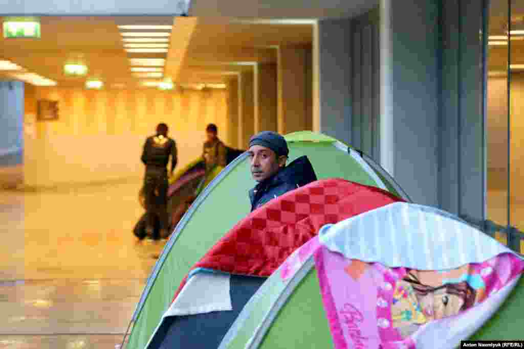 В последнем случае они пережидают время в раскинутых здесь же и в переходе станции метро палатках.