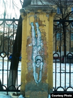 – Да, но это было не в память конкретной работы, это были совместные действия нашей группы и еще группы ЖКП, это наши друзья, художники из нашего города. И у этой группы были претензии к начальству Худграфа, и у нас что-то было. И давно была идея похоронить Худграф, а мы, конечно, немножко обиделись на него, и, наверное, поэтому мы так радикально решили действовать. И когда мы венки развешивали, мы поставили подписи, к чему это было сделано. Чтобы люди понимали, что за венки. Венки были бутафорские, не выглядели как настоящие похоронные венки, мы их специально сделали такими. Это было в память обо всех погибших произведениях искусства, дань всему стрит-арту, который на улицах погибает. Это было действие, приуроченное к моей работе. Мы посчитали, что это будет значимое и символичное место для этого всего.