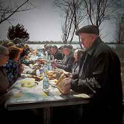 Сергей Соболев, бывший военный, работает в организации "Щит Чернобыля". В середине 90-х строительство храма в память о погибших в Чернобыле только начиналось. Сейчас Сергей Васильевич встретил нас в действующей церкви, в подвале которой находятся экспонаты "музея", посвященного чернобыльским событиям. Соболев до сих пор активно общается с участниками ликвидации аварии и их семьями, проводит экскурсии для детей, стараясь, чтобы оставалась живой память о той трагедии.