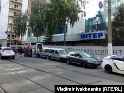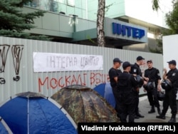 "Мы требуем, чтобы на "Интере" прекратили транслировать российскую телепродукцию. Мы требуем, что они изменили информационную политику, отказались от российской пропаганды, чтобы они не рекламировали московский патриархат и, вообще, чтобы эта координация из Кремля была прекращена", – заявил координатор акции Алексей Середюк.