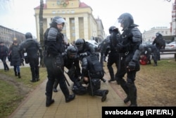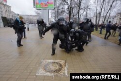 Свидетелем жестких массовых задержаний стал корреспондент Радио Свобода: экипированные бойцы бросали людей на землю, невзирая на возраст и пол, избивали дубинками, стараясь попасть в голову, а затем затаскивала в автозаки. Задержания продолжались не только на всем протяжении проспекта Независимости, спецназовцы спускались в подземные переходы, в метро, откуда вытаскивали новых пленников.