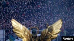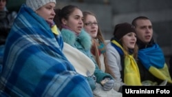 Люди на Майдане в конце февраля 2014 года.