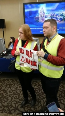 Традиционно часть участников пресс-конференции пытаются привлечь внимание пресс-секретаря Путина Дмитрия Пескова большими плакатами или необычным костюмам. Без плакатов в этот раз кремлевская администрация попросила обойтись, зато журналистов в традиционных и необычных нарядах в фойе Дома международной торговли собралось уже много.