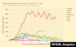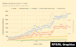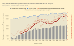 Россия на третьем месте в мире по общему числу подтвержденных случаев коронавируса, свыше 221 тысячи, при ежедневном росте в районе 11 тысяч (вторые в мире после США). Впрочем, по отношению числа инфицированных на миллион населения Россия (примерно полторы тысячи на миллион) существенно ниже в списке стран, наиболее пораженных эпидемией.
