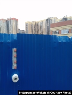 Уличный художник из Санкт-Петербурга Loketski (instagram.com/loketski/) купил в магазине гречку и туалетную бумагу и сделал из них инсталляцию на детской площадке. По словам художника, "в случае острой нужды любой может срезать то, что ему необходимо".