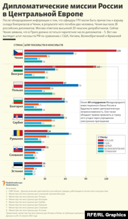 Российские посольства в центральноевропейских странах одни из самых больших, по сравнению с представительстами других государств. Решение сократить штат российских дипломатов поддержали Евросоюз и НАТО. В среду объявила о высылке трёх российских дипломатов Словакия.