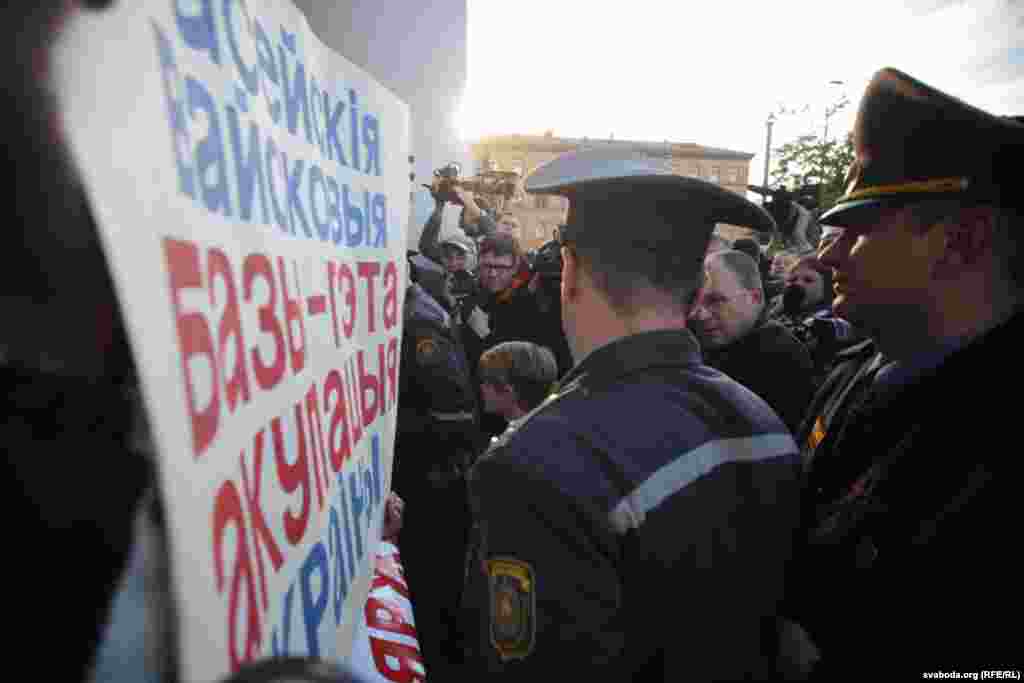 Акция не была разрешена властями, поэтому к месту проведения митинга прибыла милиция для составления протоколов о правонарушениях. Однако после возмущенной реакции манифестантов и выкриков "Позор!" стражи порядка вынуждены были отступить. Фоторепортаж белорусской службы Радио Свобода.