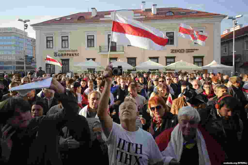 В Минске 4 октября состоялась массовая акция против размещения на территории Белоруссии военной базы российских вооруженных сил. Несколько сот человек с плакатами, бело-красно-белыми флагами оппозиции и знаменами Евросоюза вышли на улицы Минска, скандируя "Нам нужно мирное небо!".