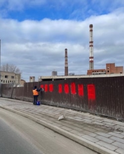 Работники коммунальных служб в России без особого успеха закрашивают антивоенные призывы.