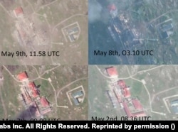 Вечером 7 мая украинские военные опубликовали еще одно видео с "Байрактара", на котором показано, как "два украинских Су-27 поражают российские объекты на Змеином". Спутниковые снимки позволяют установить, что это произошло между 9 утра 7 мая и 3 часами утра 8 мая (время по Гринвичу).